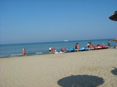 Pláž rozsáhlá s dostatkem lehátek. Moře s velmi pozvolným vstupem. Voda teplá.