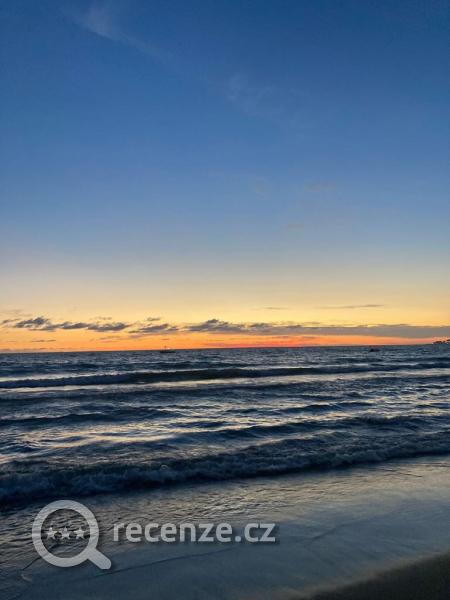 Moře klidné jako jezero, pak ale přišly vlny a bylo super. V moři sem tam tráva. Pláž malá, všude lehátka, ale místo bylo vždy. Sem tam vajgl, ale fakt to pravidelne uklízeli. Šlapadlo za 5 euro. Ve vlnách super zábava.