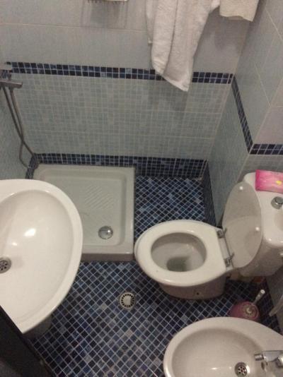 Hned při příjezdu do hotelu jsme zjistili, že nefungují zásuvky - do 10ti minut přišel elektrikář a opravil to (bylo kolem desáté večer). Elektřina za náš týdenní pobyt přestala fungovat v celém hotelu asi 3x, voda 2x, výtah minimálně 2x také (když ho elektrikář spravil, radši šel dolů po schodech...). Koupelna velmi malá, nedalo se tam pohybovat, u sprchového koutu nebyl žádný závěs, takže po vysprchování byly všude povodně, sedátko na záchodě nesedělo správně, takže jsme pokaždé sjeli (ptali jsme se a bylo to tak všude, viz foto). Na jedné z postelí se velmi špatně spalo, celou noc mě tlačila vystouplá pérka. Balkón jsme neměli, jen francouzské okno a zábradlí, které nedrželo pořádně ve zdi. Uklízečky chodily každý den, byly někdy až moc důkladné (přerovnávaly věci na nočním stolku, vylévaly pití ze skleniček, aby je mohly vyměnit...). Kolem jedenácté hodiny večer přestala hrát hudba na ulici a byl úplný klid a ticho.