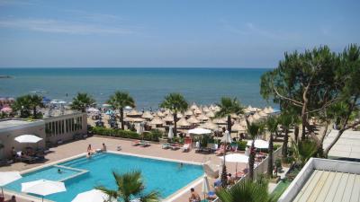 Hotel s přímým vstupem na hotelovou pláž, denně uklízenou. V okolí je poměrně dost rozestavených hotelových domů, často na sebe příliš "nalepených". Blízk hotelu větší množství obchůdků s rozličným zbožím, ceny na naše poměry vice příjemné a nízké. Všude možno koupit dosti druhů ovoce. Několik dobrých kaváren v okolí, kvalitní káva za dobré ceny. Město Dürres, cca 12 km od hotelu, překvapivě krásné, s historií. Stojí za prohlídku.