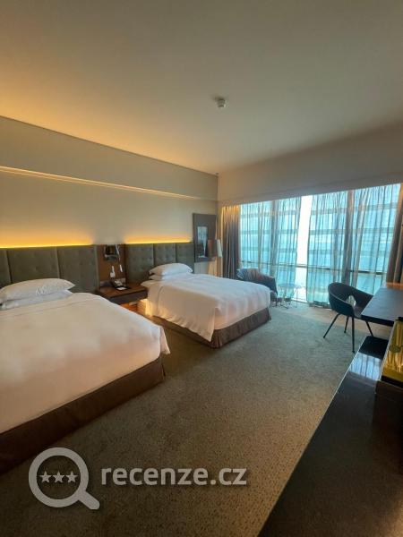 Z hotelu člověk nevidí bezprostředně žádnou stavbu, jelikož je hotel otočený celý k moři, takže směrem do města vidí hosté jen z chodby, což je fajn, protože se v Bahrajnu staví hodně. Ale naopak zase vedle bazénu se zrovna opravovala fontána s posezením, takže to bylo taky slyšet i vidět, ale měl by to být krátkodobý projekt, jen rekonstrukce.