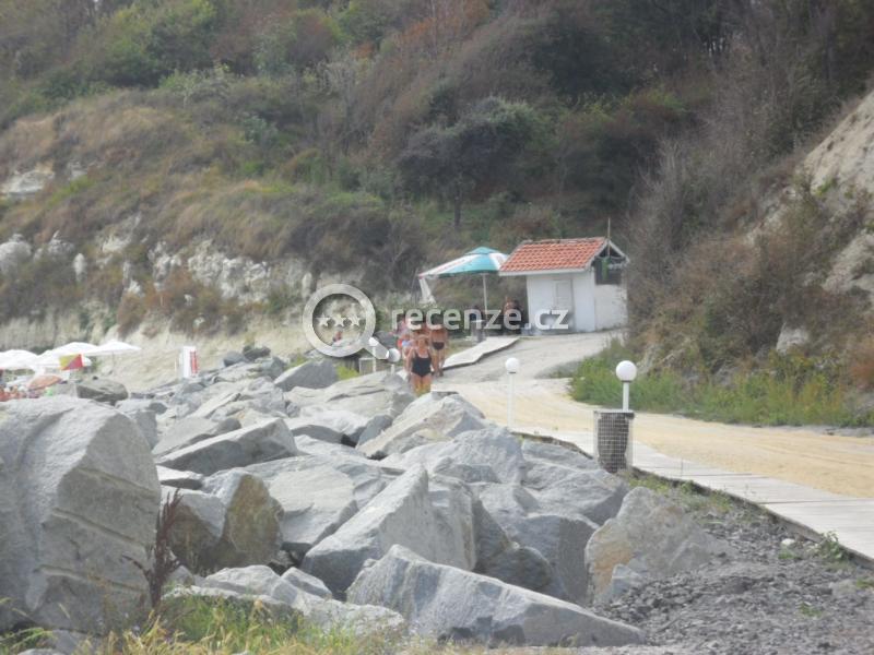 Písečnou pláž patřící údajně k hotelu nikdo neudržoval. "Maník" na pláži se staral jen o to, zdali jste v recepci hotelu zaplatili 12 Leva za dvě lehátka se slunečníkem vaší CK.