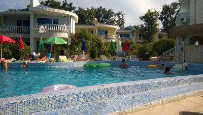 Recepce je otevřená celý den do 23 hodin. Slečny mluvily anglicky. Vyměnily nám kdykoliv eura na leva. Personál ochotný. V baru u bazénu jsme si dávali výborné koktejly jen za 5 leva. Bazén s lehátky je ok, nejlepší je posezení přímo nad mořem.
