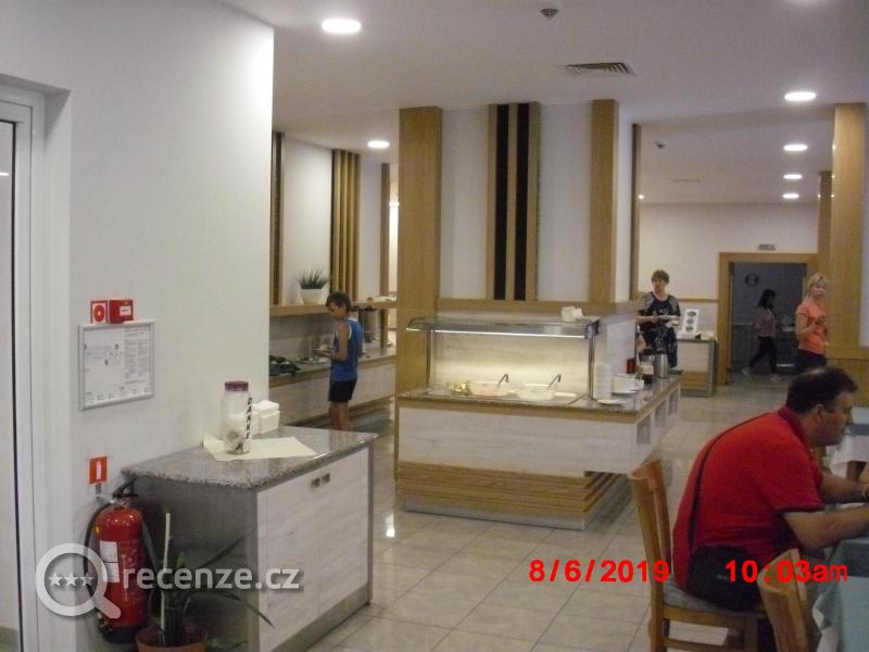 Hezký velký bazén s dět. brouzdalištěm. Bazén hloubka 90- 150.cm, lehátka, slunečníky, plavčík, bar. Okolo stromy takže si vyberete zda chcete slunce nebo stín. Nevím jak jindy, ale za nás byl hotel a dost okolních obsazen občany Ruské národnosti ( rodiny s dětmi, důchodci) , ale chovali se slušně. Každý den uklizený pokoj, uklízečky makají celé dny poctivě, personál v jídelně také( hned odnášejí použité nádobí ze stolu, doplňují stravu). Chovají se všichni spíš nenápadně, žádné velké hovory s hosty ,ale pracují poctivě. Hotel má 5. pater, výtah a je bezbariérový. Večer z vedlejšího hotelu hlasitá hudba, ale v 22. h končili( nevím jak v sezoně). Zavřeli jsme balkon, pustili klimatizaci a po skončení produkce opět otevřeli balkon. Na pokoji TV s Eurosportem a pár programů s jejich hatmatilkou:-))