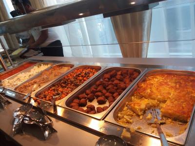All inclusive - snídaně, obedy, večeře v restauraci s moznosti sedet venku s vyhledem na more. Strava se opakujici, ale dobra, dalo se vybirat.. Hodne zeleniny, ovoce, dezerty mirne preslazene jak je v Bulharsku zvykem. Snacky dopoledne a odpoledne u baru u bazenu zahrnovaly pizzu, tousty, zmrzlinu, vzdy neco sladkeho k tomu. Napoje alko vc. michanych napoju a nealko v neomezenem mnozstvi, mili a ochotni cisnici.