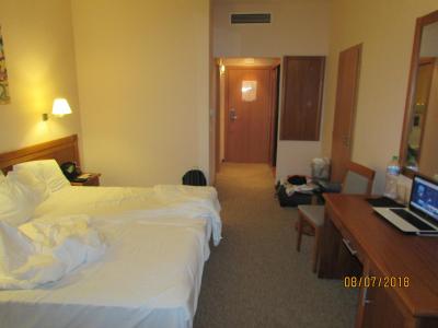 Ubytování je krásné, neustále čisté, perfektní personál. URČITĚ DOPORUČUJI SI PŘIPLATIT za pokoj s výhledem na moře...v daném případě i na aqua park a bazénový komplex. Je to nádhera koukat z balkonu na moře atd.