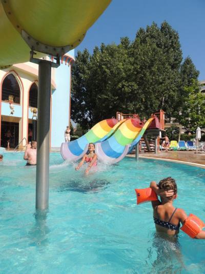 Je to masovka, ale to se dalo skousnout, vzhledem k tomu, jak je areál rozlehlý, se lidi rozprskli a neměla jsem pocit nějakého návalu, kromě občasných front na večeře. Na večerní posezení bylo vždycky dost křesílek na různých terasách nebo v okolí bazénu. Transfer z a na letiště proběhl hladce, bylo o nás postaráno, služby delegáta (pan Raffailov) na jedničku! Doporučuji výlet do Nessebaru - malebné městečko, do Varny jsme jeli vlastně jen do delfinária, ale děti si to užily.
