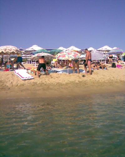 chybí sociální zařízení - pouze jedna toaleta na celou pláž - klíč nutno vyzvedávat v restauraci, u slunečníků chybí sebemenší odpadkový košík - plno kuřáků a nedopalky odhazují do písku