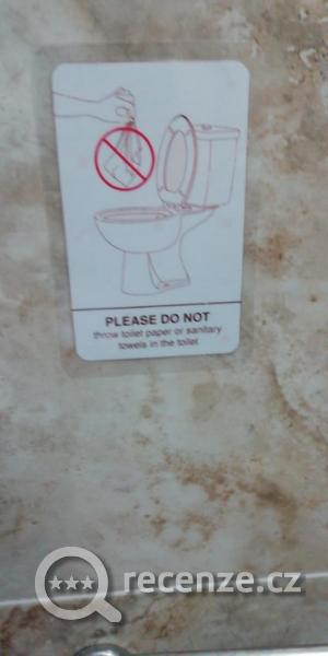 Velice mne překvapila informace v hotelu, že se nesmí házet toaletní papír do záchodu!! To je stejné jako v Řecku. Toto upozornění jsme však nedokázali dodržet. Pro nás absolutně nepřijatelné abychom použitý papír házeli do odpadkového koše.
