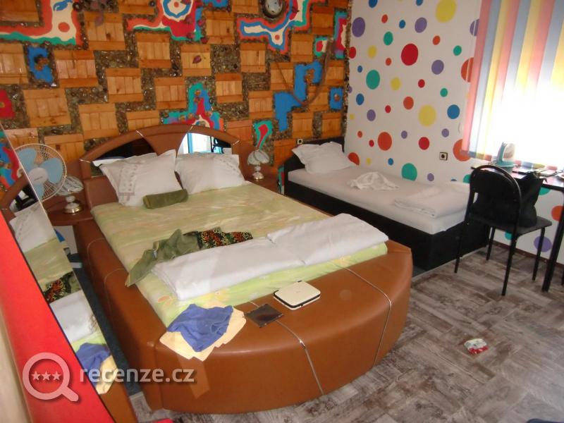 Pokoj malý, přistýlka "podměrečná" a nepohodlná. Jen jedna židle u stolku a málo úložných prostor na oblečení. Koupelna podle bulharů - takže žádný sprch. kout, sprchujete se uprostřed koupelny, záchod je pořád mokrý. Balkón společný s vedlejším pokojem, to mi hrozně vadilo! Na balkóně stůl a 2 židle, sušák a mile mě překvapila zásuvka. Když mi dítě ještě spalo, vařila jsem kafe venku. ;) Samá kritika, ale na druhou stranu... na pokoj jsme se chodili jen umýt a vyspat se, takže nám to stačilo a ceně to vlastně odpovídalo.