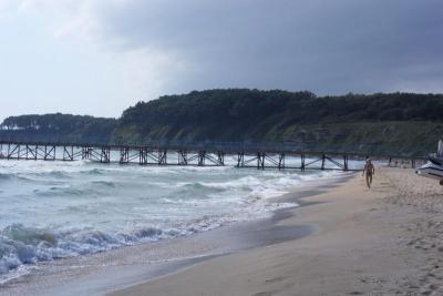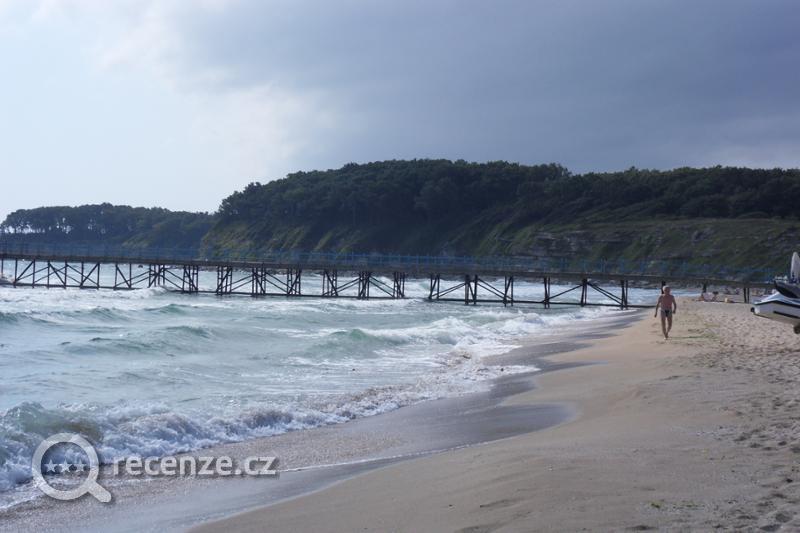 Pláž je hned pod penzionem, stačí projít restaurací po schodech. Ale tato nejbližší pláž je dost plná, vody je tu málo a je dost špinvavá. Chodili jsme dál podél moře na jižní pláž, asi 5 minut, tam nebyl na pláži skoro nikdo, moře čisté. Dvakrát jsme měli v moři řasy a jednou malé medůzy. Byli jsme se podívat i v Kitenu, ale v Primorsku je pláž mnohem hezčí a je tu míň lidí. Severní pláž nás moc neoslovila, byli jsme tam jen jednou.