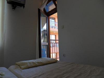 Pokoj pro dva byl dost malý, ale hezky zařízený. Dvoulůžko, dva noční stolky, jedna lampička, jedna úká skříň, psací stolek, židle, lednička. Na balkoně plastový stolek, dvě židle a sušák na prádlo. Koupelna byla hodně malá, sprcha hned u záchodu, bez závěsu, jen jeden háček na ručník, žádná polička. Byli jsme ve 3. patře, výtah v penzionu není, takže jsme dost posilovali stehenní svaly, ale to nám nevadilo. Starším lidem ale nedoporučuji. V koupelně smrděl odpad, museli jsme pořád zavírat dveře, aby to nebylo cítit do pokoje. Balkon byl celkem velký, ale hned naproti pár metrů jste koukali na lidi na balkoně v protějším penzionu. V pohodě byste si s nimi mohli z balkonu na balkon povídat. Ocenila bych větší soukromí.