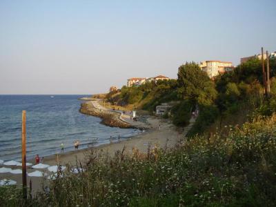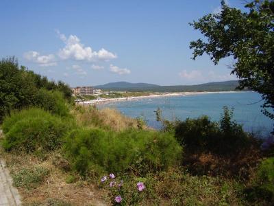 Severní pláž kousek od penzionu, vede po prašné cestě a přes duny asi 200 metrů. Pláž je prostorná dlouhá, ale velkou část zabírají placené slunečníky a lehátka. Cena 6 leva za slunečník a 6 leva za lehátko na den. Vybírají i o půl šesté večer. Vstup do vody je přes písek , mušle, kamínky a vlny. Na pláži nechybí plážové bary a restaurace, přibylo i pár sprch a wc. V nabídce jsou i masáže. Nechybí jízda na banánu, matračce, vodní šlapadla, skútry. Plavčík je na pláži od 8.30 do 18.00. Potuto dobu se musíte řídit jeho pokyny. Často červená vlajka - zákaz koupání , žlutá - omezený prostor pro koupání, zelená - volné plavání. Po 18.00 to plavčík zabalí a moře je plné lidí co si chcou zaplavat.