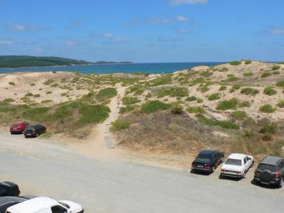 Mezi hotelem a mořem je oblast nazývaná Duny u Primorska , které zakrývají část výhledu na moře i ve 2 patře. Do centra je to asi 10 min. Přímo před hotelem je prašná a poměrně frekventovaná cesta, používaná převážně jako průjezdní i pro autobusy cestovek. Místní jezdí po ní opravdu pomalu a nepráší. Rekreanti ale ne, zvláště ti na čtyřkolkách, ale těch není zase nějak moc. Alternativa k této cestě je po asfaltovaných komunikacích, které jsou tam všechny ostatní, ale je to zajížďka asi do 300 m a který řidič by si nezkrátil cestu...