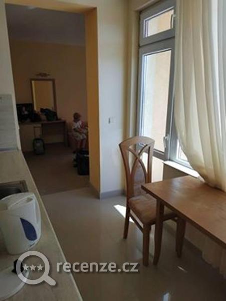 Vše bylo v pořádku. Jen se ma nelíbí, že jsem měla pokoj s kuchyní, která se skládala s linky, dřezu, po dvou talířích, 2 hrnků, struhadla příborů pro dva, konvice a opékač topinek. Chybělo my možnost vaření. Stačil by vařič, když je to placeno jako kuchyně. Jinak vše krásné nové a čisté. Papí na uklíd super pohodářka s pochopením.Vitah je deviza.