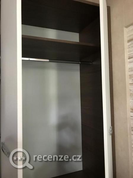 Na pokoji jedna skříň bez polic pro tři kufry!!