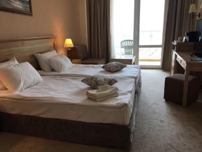 Hotel je rozdělený na dvě budovy. Na hlavní která je bez výtahu a vedlejší která je s výtahem. Hotel nabízí 3 a-la carte restaurace ( asijská, italská a bulharská) vždy je nutná rezervace dopředu. Ve venkovním areálu 2 sladkovodní bazény s terasou na opalování a bar u bazénu. Lehátka,slunečníky a osušky jsou u bazénu zdarma. Resort nabízí aquapark který je zdarma.
