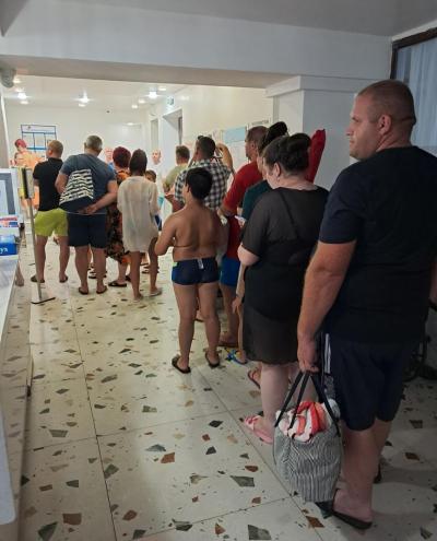 Po příjezdu na hotel v 11 hodin dopoledne jsme čekali na pokoj do 14 hodin, to chápu, ale odmítli nám dát náramky, že prý až potom. Takže unavení z cesty jsme měli žízeň a hlad,ale bohužel. Museli jsme si jít rozmenit peníze a jít se napít na ulici. Ve 14 hodin jsme dostali klíč od pokoje,ale náramky pořád nic, zase byla odpověď, že až potom. Prý máme nárok až na večeři, takže aby jsme náhodou si nemohli dát něco na pití a jídlo. V hotelu je 12 pater a jen dva výtahy, takže neustále fronty před výtahem. Když už jsme dojeli na pokoj tak karty nefungovaly, musela nám otevřít uklízečka. Pokoj moc pěkný, ale třeba záchodové prkýnko bylo menší než záchod a při sprchování tekla voda až do půl koupelny. Jídelna narvaná, špinavé stoly, jídlo celkem dobrý. Bazén na dvoře malinký, mezi paneláky. Pláž hrozná, na celém pobřeží naplavený mech který smrděl, po vkročení do moře se musíte prodrat mechem. Moře zelený od mechu. Zaplatíte za 2 lehátka a slunečník v přepočtu 350 korun a jste tam jen 3 hodiny, protože pak se zatáhne a začne pršet.