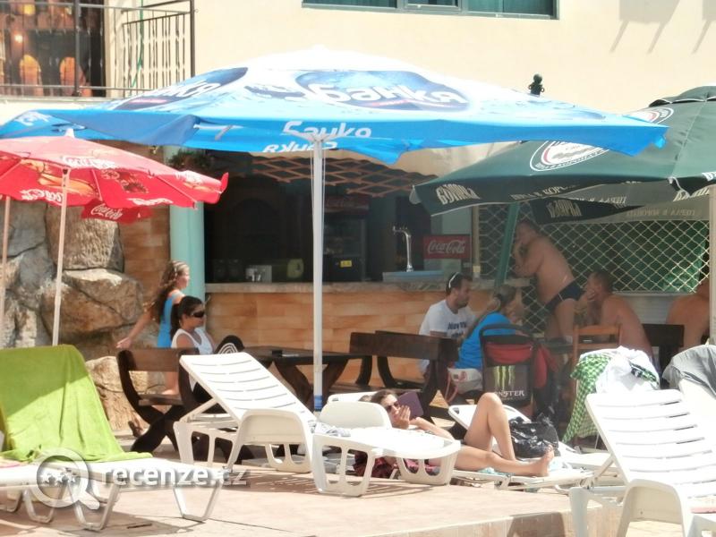 BAZÉN A LEHÁTKA: opět pěkně nafoceno, každý se divil, jak je to malé, voda měla maximálně 23 stupňů, pro děti téměř nic, jedna rozbitá malá skluzavka. Nedostatečná kapacita lehátek a ještě jich byla polovina rozbitá. Ačkoli byla v bazénu světla, nikdy nesvítila.Trávník kolem bazénu a hotelu, už ten signalizoval, že na tomto hotelu není něco v pořádku, když u všech ostatních byl krásný opečovávaný anglický trávník a tady snaha o něco alespoň zeleného.