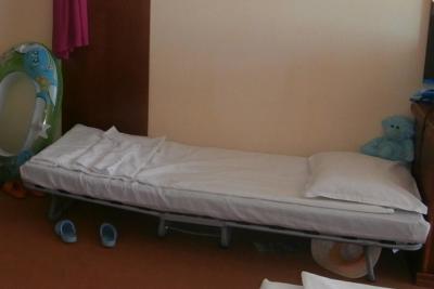 přistýlka připomínala sparťanskou postel a ne přistýlku 4hvězdičkového hotelu (jen kovová konstrukce s matrací a prostěradlem bez chrániče matrace, který byl na ostatních postelích)