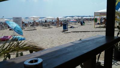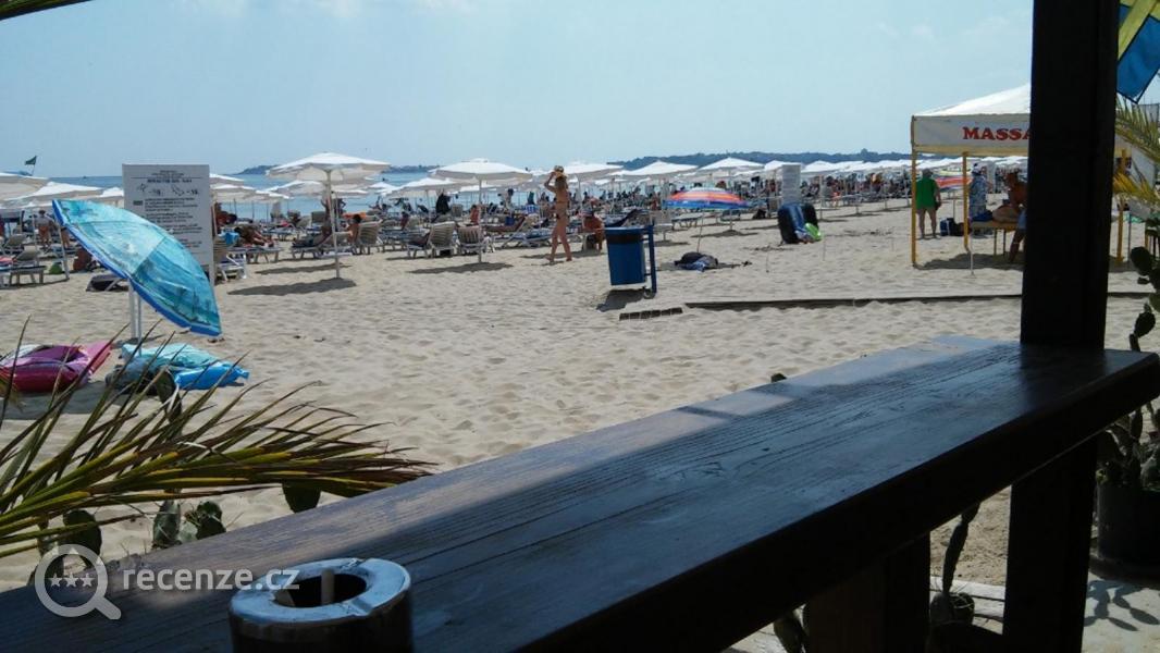 Pláž je písečná, njen za léhátka a slunečník se platí dost vysoká částka