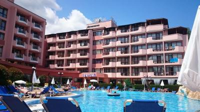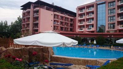 Odpovídající kategorii 4* a popisu hotelu. Dva venkovní bazény + malý dětský. Voda přiměřeně chlorovaná. Vedle recepce okno se směnárnou. Kurz Eura/bulharská leva zde byl lepší, než v okolních směnárničkách. V půlce června to bylo 1 EUR=1,915 BGN.