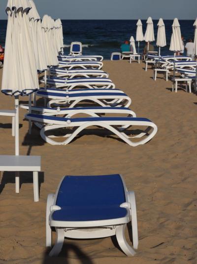 Je zde poměrně malá část pláže, který je bez lehátek a slunečníků. Tam je lidí opravdu hodně. Většinu prostoru pláže bohužel zabírají placená lehátka a slunečník. Ty ale nevyužívají návštěvníci tolik a tak zejí prázdnotou. Při ceně 30 Leva (skoro 400kč) za 2 lehátka a slunečník na den není ani divu. Pokud se jdete koupat až po 19h, výběrčí už tam není a lehátka lidé pak používají na odkládání svršků nebo jen tak po posedávání. Nějaké svoje místečko si ale přes den každý najde. Slunce zapadá nad pevninou, pokud stojíte čelem k moři, tak přímo za vašimi zády. Ideální na focení v podvečerním slunci na pláži..