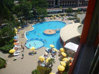 Hotel je umístěn v rušnějším centru. V okolí je spousta barů, restaurací, diskoték a obchůdků. Je třeba počítat s tím, Slunečné pobřeží žije nočním životem, ale nijak nás ruch kolem hotelu neobtěžoval.