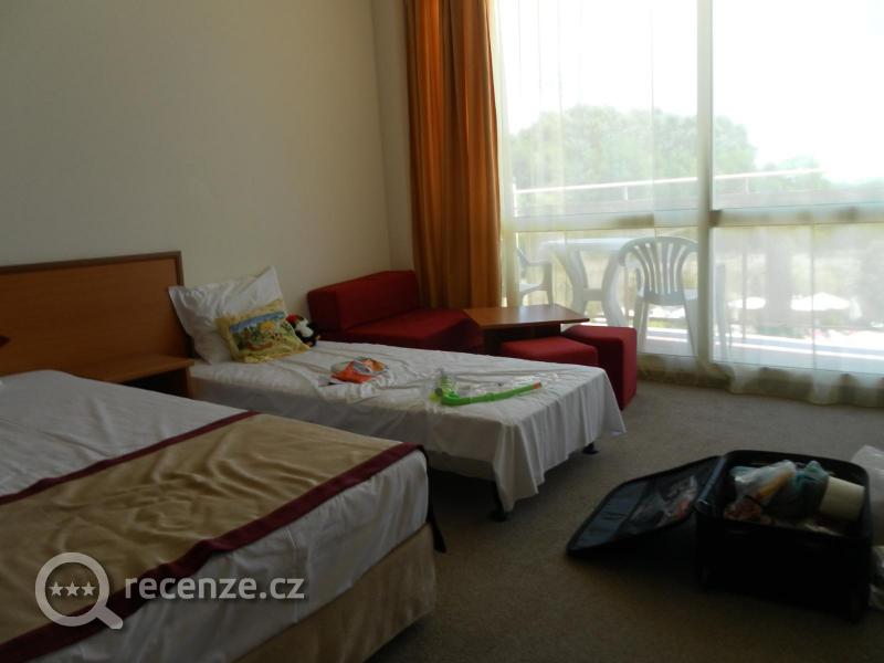 Pokoj byl vybaven myslím standardně, klimatizace, TV, lednička s vodou a flaškou vína (pozornost hotelu), na balkoně posezení. 3 venkovní bazény super, protože vždy se dalo nějaké to lehátko nalézt. Posilovnu se mi nepodařilo za celý týden nalézt ;) zřejmě byla v druhé části hotelu, ale přiznám se, že jsem po tom až tak nepídila. Bazén vnitřní ano, ale překvapilo mě, že nebyl nějak moc využíván, přestože byl asi otevřený. Uklízelo se myslím pravidelně každý den, ručníky vyměnili na požádání nebo když jsme je dali na zem. Personál byl slušný a příjemný. Akorát přes množství lidí si tu člověk přijde trochu jak ve vesmíru, většina cizinců na pozdrav neodpoví. Na recepci také příjemní, se svoji krkolomnou angličtinou jsem si celkem vystačila ;), někdy se snažili i česky odpovědět, což mě příjemně překvapilo. Animační programy nás taky překvapily, byla zde skupina animátorů, kteří kromě pondělí se opravdu snažili zabavit děti (miniclub) i dospělé (různé hry), i když my jsme to nějak nevyužívali, ale jejich snaha se cení ;) Každý den od 20:30 bylo minidisco, pak hráli dál asi cca do 23:00, takže kdo hledá úplný klid, asi nedoporučuji. My sice nejsme vyznavači diskoték a reprákové hudby, ale dalo se to vydržet. I přes den bývala obvykle hudba u bazénu.
