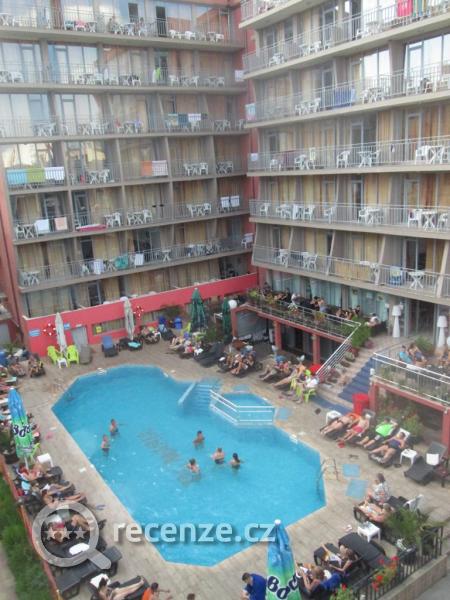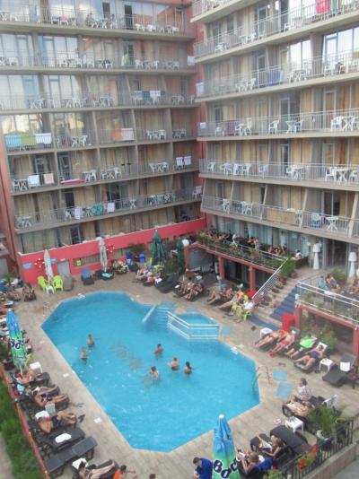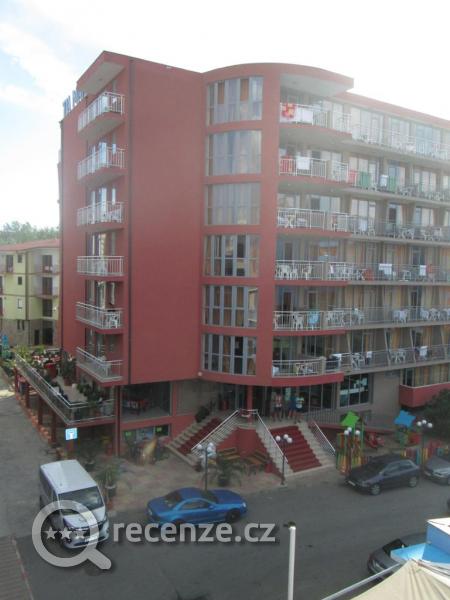 Hotel cca 800 m od pláže a asi 4 km vzdušnou čarou od poloostrova Nesebar v docela rušné části, okolo spopusta dalších ubytovacích kapacit. V dosahu možnost nakupování jak v supermarketech tak na tržištích ve stáncích, platí se vše v místní měně, v marketech dost draho oproti Čechám, na tržnici se dá i něco usmlouvat. Místní vyhlášený alkohol se musí hledat, ale je 2,5x levnější než ten samý ve Free shopu na letišti!!