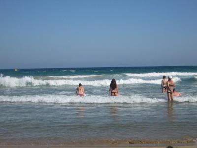 Hotel je od moře cca 10-12 min. pěší chůze- podle trasy a rychlosti chůze. Na pláži lehátka a slunečník za poplatek každý kus 10 Leva = pro dva lidi 30 Leva na den ( 1L= 14,-Kč). Jinak se dá ležet na svých předmětech na veřejné pláži zadarmo. Moře čisté, pláž jemný písek, čistá, někdy pěkné vlny, jednou dokonce vyvěšena červená vlajka a plavčíci nepouštěli nikoho do moře dál než po kolena. Žádné mušličky, sem tam medůzka, nemusí být boty do vody.