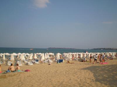 Moře bylo zelené! Bylo v něm spoustu řas a nejen na kraji (po celý náš pobyt).Sice Bulhaři říkají, že když v moři jsou řasy, tak je čisté a léčí (místní obyvatelé si z nich dělají zábaly) , ale příjemné to není.