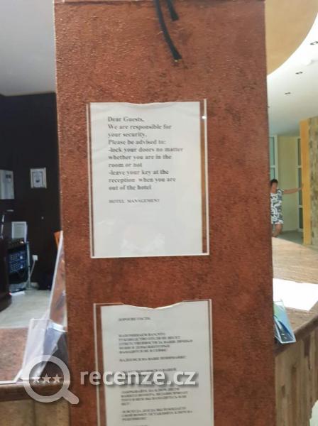 Pri príchode do hotelu nám hneď na recepcii povedali, že ak niečo nebude fungovať, že nám to neopravia. Mysleli sme si že to je nejaká sranda.