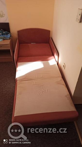 Spali jsme na dvou na sobě položených matrací, což byla manželská postel, přistýlka špinavá od moči, na pokoji plíseň, švábi, tekoucí wc. Na denním pořádku bylo, že mladíci, kteří tam byli ve skupinách 15 osob nám bušili ve 2ráno na dveře, řvali na chodbách, poslouchali hlasitě hudbu, byla tam i 2x policie, to trvalo celý pobyt. Podotýkám, že máme 3 děti, z toho 2 malé, zážitek bych nikomu nepřál.