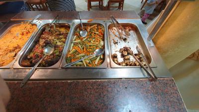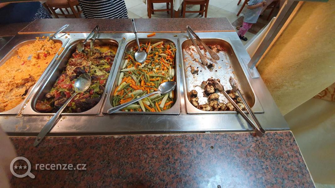 Žádná místní kuchyně. Jen něco po čem budete mít pocit zasyceného žaludku. Polévky bez chuti jako pro diabetiky ať je to jakákoliv chutná stejně jako předešlá. Opravdu víc ošidit už to nešlo. Jestli tady někdo píše, že jídlo bylo v pohodě, tak kecá. Protože prostě nebylo veškeré saláty, které byli k dispozici byla jen nakrájená zelenina bez jakékoliv chuti bez soli bez oleje bez octu nic... Veškeré kuřecí bylo tak suché, že to bylo jako by jste jedli vlasy. Jídlo nebylo vždy stejné občas se trošku lišilo. Zákusky byly každý den ty samé a sice vypadali, že mají jiný korpus, ale chutnaly úplně stejně. byly totiž polité nějakým likérem, který ten korpus nasákl a šmitec. Ovoce které podávali bylo v pohodě, bývalo na výběr Melou, švestka, banán, hruška, nektarinka nebo jablko. All inclusive nápoje jsou opravdu k smíchu - voda s práškem co měl nahrazovat šťávu. Vypili jsme párkrát pak jsme radši chodili do obchodu pro něco normálního. V baru nalévají pančovaný alkohol s něčím co má vzdáleně připomínat džus, ale je to prostě zase voda se šťávou. Takže si představte drink sex on the beach (pančovaná vodka + jahodový monin + voda se šťávou). Žádný barman, který by si třeba užíval svou práci a dělal show nebo třeba hezký bar, byl to ulepený kousek dřeva a roztrhané židle, na které jsou hozené podsedáky a je jich asi jen 8 kolem celého baru, takže si tam prostě moc není šance sednou ale stejně tam nikdo nechtěl sedět, protože to tam vypadá opravdu bídně. Je tam na výběr s coly, spritu, fanty, ale podotýkám nic není reálné, jsou to jako u nás ty nejlevnější koly za 10 kč 2l co chutnají jak by byly hodinu vyvětrané.