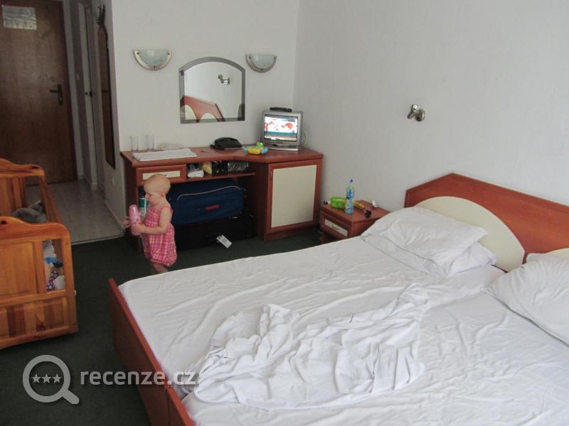 Klady: pokoj není vůbec tak miniaturní, jak se zde píše (měli jsme A2B). Měli jsme na pokoji i dětskou dřevěnou postýlku a místo nám stačilo. Židli od stolu jsme dali ke zdi a pod stůl jsme na sebe dali oba velké kufry a místo bylo hned. Kočárek jsme měli složený a pověsili jsme ho na věšák. Nebyl problém. DENNĚ uklízeli, vysávali, skládali ručníky. Nevím přesně, kolikrát nám je vyměnili, ale když jste tam na týden, tak i kdyby vám ho vyměnili jednou, tak to stačí. Nebo alespoň u nám je zvykem se do ručníku utírat až za čista a nenosit si ho ven k bazénu. Koupelna hezká, velký sprchový kout.