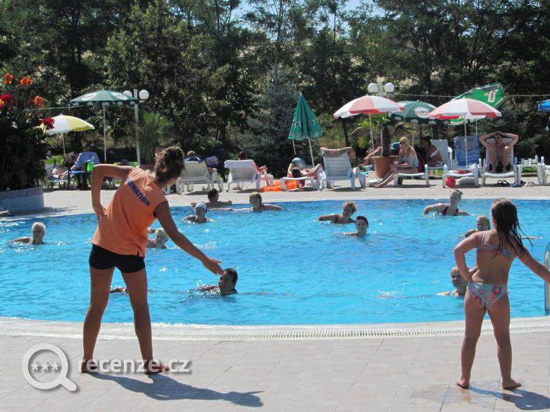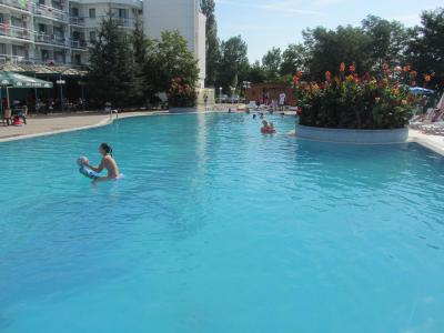 Vybavení průměrné, jednoduché, nic extramoderního, ale stačí. Hotel hezký, čistý. Super velký bazén! Opravdu velký a čistý. Plno lehátek a zahrada udržovaná doopravdy pěkně. Animátorka byla příjemná mladá slečna a snažila se. Uklizečky taky v pohodě. Myslím, že personál byl milý, nebo alespoň normální. Všichni příjemní, usměvaví. Jen jedna!! Jedna ženská za barem - jak jste jí nerozuměli hned napoprvé, otočila se zády, flákla tím, co měla v ruce a bulharsky nadávala. Asi nemocná. Dokonce jsem byla svědkem toho, že jeden černoch se jí šel slušně zeptat, kde je čaj. A ona řekla něco v tom smyslu jako "jáááj, černá huba". A to mě hrozně urazilo. On jí nerozuměl, ale my ano. Myslím, že by v hotelu taková ženská neměla vůbec pracovat.