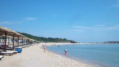 Předlouhá písčitá pláž, jak na kraji světa, kolik si zaberete, tolik máte. Hotel má slunečníky s lehátky, zaberete si jak přijdete. Plavčík a zdravotník od 8 do 18 h bdí nad koupajícími se. Pláž šířka cca 50 m, doprava doleva stovky metrů. Doprava skoro nikoho nepotkáte, vlevo cca 100 m veřejná pláž slunečníky a lehátka a taky spousta volna kolem.