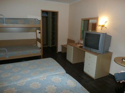 vybavení pokoje bylo standartní, ale zcela postačující, byla i lednice, televize, individuální klimatizace