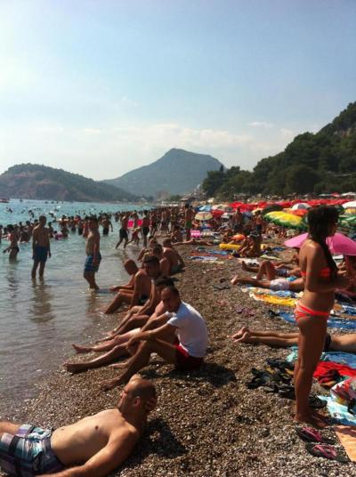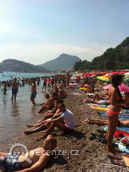 Slíbená písčitá pláž ani náhodou. Při vstupu do vody oblázky a ve vodě kameně Doporučuji boty do vody. Přeplněná místními obyvateli, kteří si arogantně dají ručníky přímo ke vstupu do vody a není kama jít. Ve vodě hrají vybíjenou. Neustálý hluk z místních baru, je opravdu dost hlasitý po celý den.
