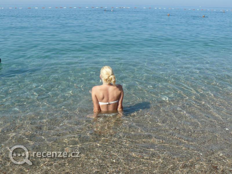 Bála jsem se, že moře ještě nebude dost teplé, ale bylo. Zvlášť dopoledne bylo úplně průzračné, šnorchlovaly jsme. V moři neplaval odpad, jako bývá v Turecku nebo i jinde. Pláž udržovaná, od hotelu cca 20 m, mohly jsme si kdykoli dojít pro pití na zahradní bar. Lehátka bohužel placená (5 euro).