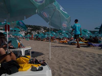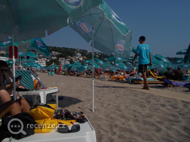 Pláž je písečně-oblázková,udržovaná. Lehátka i slunečníky za poplatek 3 eura na den. Vstup do moře bez koupacích bot nepříjemný, dost kamenitý, voda čistá a teplá. Možnost vodních sportů je ale dále od naší pláže.
