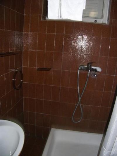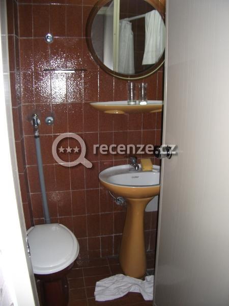 Koupelna se sprchovým koutem, my měli aspoň závěs, ale ani ten všude nebyl, umyvadlo a WC - víc jak 1 člověk se tam nevlezl.