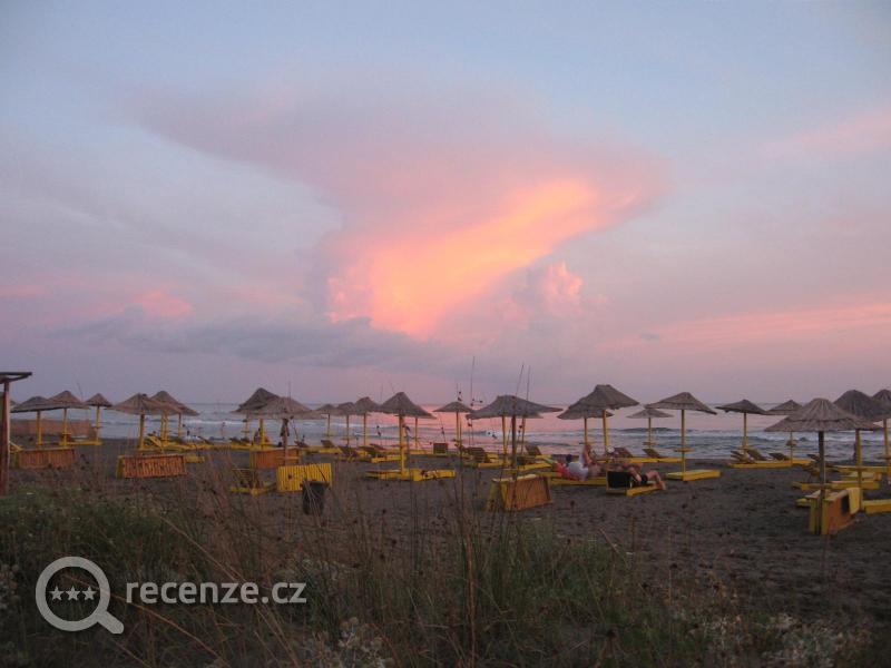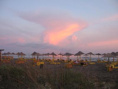 Nudistická pláž čistá, denně ráno uklízená, tmavý krásný písek, pozvolný vstup do moře, které bylo po ránu klidné (podél bojek se dalo krásně plavat), odpoledne vítr a pěkné vlny. Krásné procházky po pláži.