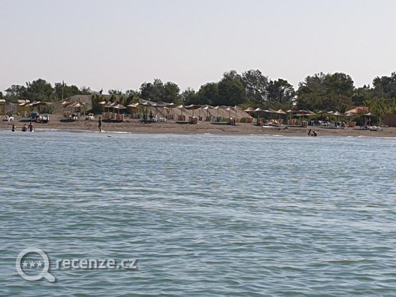 Větší nudistická pláž, menší pláž pro lidi v plavkách - na obou jsou sprchy i bufet. Naturistická je sice větší, ale lidí, kteří se zde koupali v plavkách bylo mnohem míň, ani jedna nebyla přeplněná - nikdy. Obě dokonale udržované. Dostatek místa pro osušky, pokud si nechcete platit za slunečník. Dlouhá a rozlehlá přírodní pláž. Byli jsme upozorněni, že se neuklízí, ale žádná katastrofa, spíš naplavené kusy dřeva, než nějaké velké množství odpadků. Směrem k albánské hranici odpadků přibývalo. Možnost projížděk po této pláži na koních.