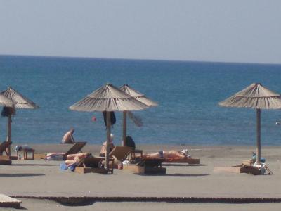 Moře krásné a čisté, pláž jemný tmavý písek, úprava pláže až v dopoledních hodinách, moře velmi mělké, pro plavce až za bojkama. Výborné pro starší lidi.