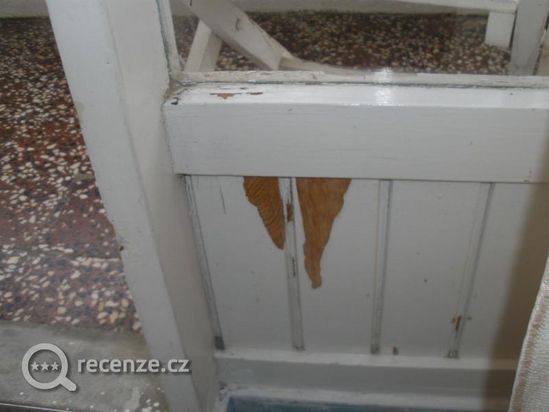 Zakoupili jsme si hotel kategorie tří hvězd a došli jsme do vybydlené špinavé turistické ubytovny. Co nás jako první přivítalo byl zápach z koupelny, kde jsme na podlaze objevili vodu z protékajícího WC. Kaluž se stále zvětšovala a více zapáchala. Ihned jsme šli reklamovat k delegátce a požadovali výměnu pokoje. Vyhověno nám nebylo, ale byla přislíbená okamžitá oprava. Za celý týden nikdo nepřišel. V koupelně byly vytržené držáky na mýdla, koukali jsme na díry v kachličkách. Zeď byla špinavá od komárů. Ve skříní byla taková špína, že jsme neměli, kam uložit oblečení. Jediná mini židlička v pokoji byla naprosto nechutná. Sednout tam by se málokdo odhodlal. Stejně tak židle na balkoně, nedalo se na nich sedět, byly oloupané. Okna byla také oloupaná. V noci nám byla zima, na přikrytí jsme měli pouze prostěradla, přiložené propocené nevyprané deky byly jen pro odvážné. Jako důkaz přikládáme fotografie.