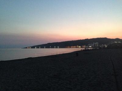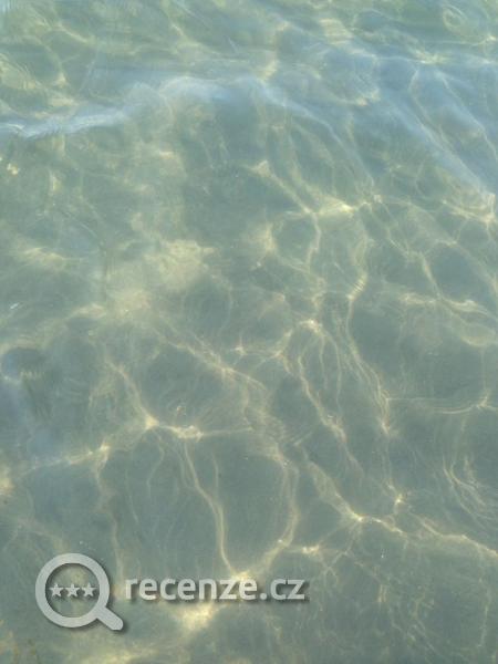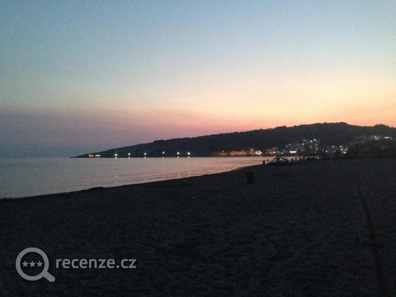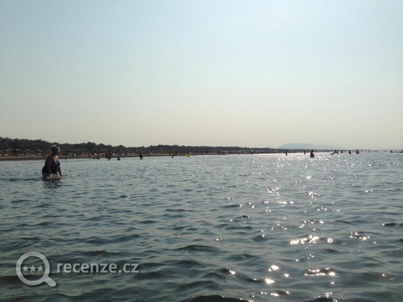 Pláž kousek od hotelu, písečná s pozvolným vstupem do moře - opravdu vhodná pro děti, minimálně 30 m od břehu je hloubka po kolena. Moře čisté, plážová lehátka pohodlná, 4€/den. Na pláži sice vajgly, pecky, kukuřice atd. od turistů zahrabané v písku, ale chodí po pláži chlápek se síťkou, co se snaží vše sebrat.