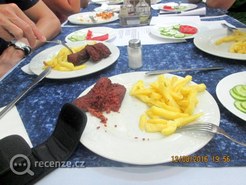 Byla jsem velmi zklamaná, co se týče stravování , ubytování a plážového servisu. Za naprosto nedůstojné považuji především stravování, které zdaleka neodpovídalo all inclusive light. Nejen to, že jsme si nemohli sami vybrat podle své chuti, ale bylo nám nabízeno naprosto nevyhovující masové jídlo až na jednu vyjímku, kdy byly těstoviny, ale zase s masem. Pro děti a případné vegetariány strava nebyla. Protože se jídlo nedalo jíst a dokonce jsme měli hned 2. den střevní problémy, chodili jsme na jídlo do pizérie mimo areál a pití jsme si kupovali.