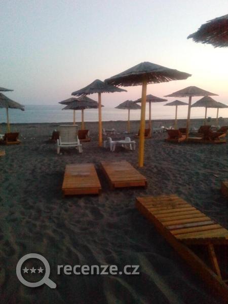 Plážový servis zakoupený na recepci hotelu za 4 eura na den (2 lehátka a slunečník) velké plus. Pláž krásná, dlouhá, prostorná. Veliké plus celé dovolené.